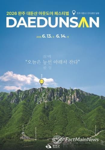 팩트메인뉴스 이훈 기자 | 완주군이 산악 극한 활동과 야외 활동의 정수를 선보이는 대표 축제인 ‘완주 대둔산 축제’를 오는 6월 13일부터 14일까지 이틀간 대둔산 일원에서 개최한다.