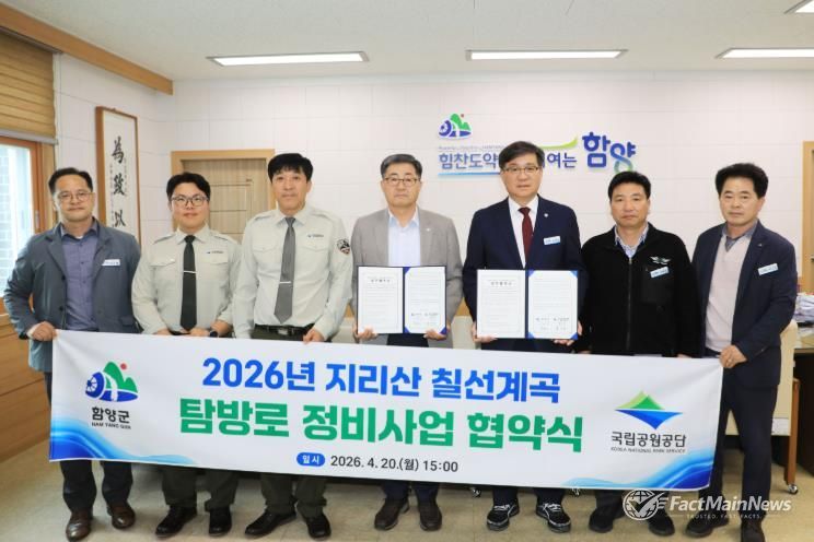 함양군 허인호 산림녹지과장은 “이번 협약을 통해 칠선계곡 탐방로를 더 안전하고 쾌적한 탐방환경으로 정비할 계획”이라며 “앞으로도 관계기관과 긴밀히 협력해 지리산을 찾는 탐방객들의 만족도를 높이고 지역 관광 활성화에도 이바지하겠다”라고 전했다.