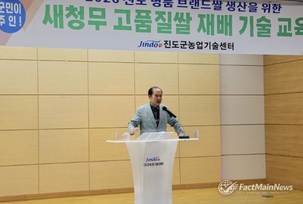 팩트메인뉴스 이훈 기자 | 진도군은 ‘전남 10대 고품질 브랜드쌀’로 선정된 보배진미쌀의 품질을 유지하기 위해 계약재배 중인 농가를 대상으로 진도군농업기술센터 강당에서 재배 기술 교육을 진행했다.