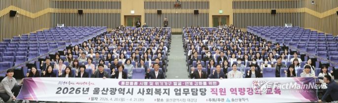 팩트메인뉴스 이훈 기자 | 울산시는 4월 20일부터 21일까지 양일간 시청 본관 2층 대강당에서 ‘2026년 통합돌봄 시행 및 위기가구 발굴·연계 강화를 위한 사회복지 업무담당 직원 역량강화 교육’을 실시했다고 밝혔다.