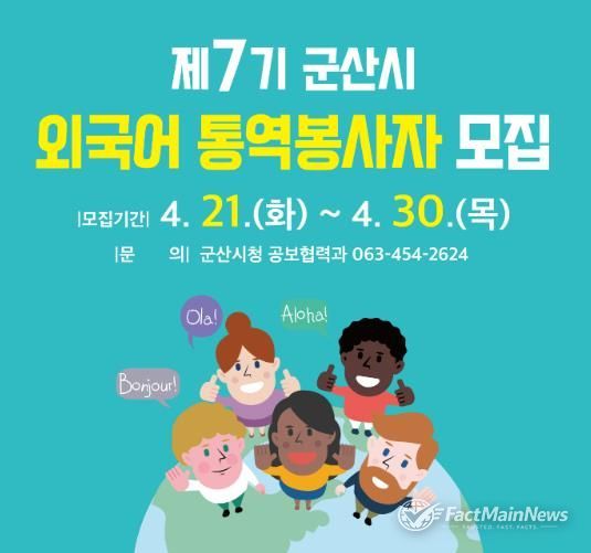 팩트메인뉴스 이훈 기자 | 군산시가 2026년 4월 21일부터 4월 30일까지 ‘제7기 군산시 외국어 통역봉사자’를 모집한다.