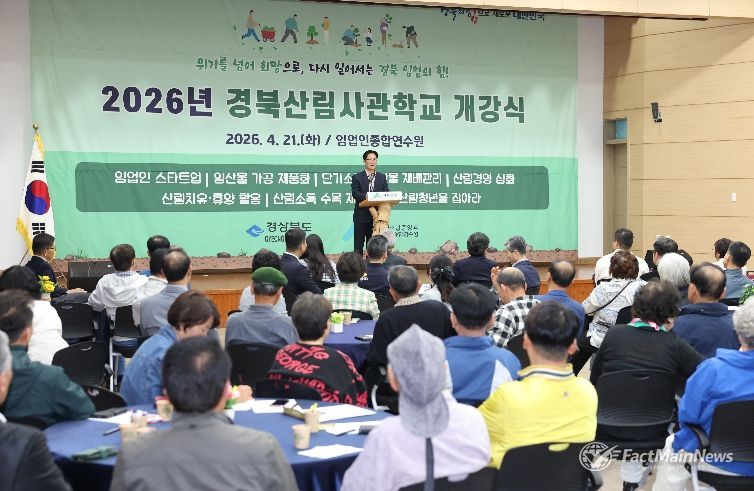 팩트메인뉴스 이훈 기자 | 경상북도는 4월 21일, 산림조합중앙회 임업인종합연수원에서 교육생 등 160명이 참석한 가운데 ‘2026년 경북산림사관학교 개강식’을 개최했다.