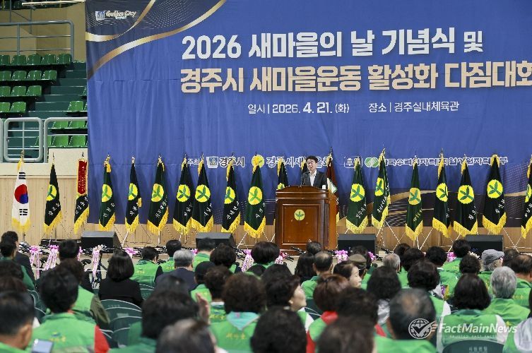 팩트메인뉴스 이훈 기자 | 경주시새마을회(회장 박정원)는 21일 황성공원 실내체육관에서 ‘새마을운동 제창 56주년 제16회 새마을의 날 기념식 및 2026 경주시 새마을운동 활성화 다짐대회’를 개최했다.