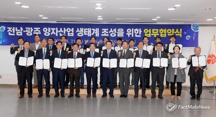 광주광역시와 전라남도는 21일 시청 중회의실에서 대학, 연구기관, 기업 등 23개 기관이 참여하는 ‘광주·전남 양자산업 생태계 조성을 위한 업무협약식’을 개최했다.