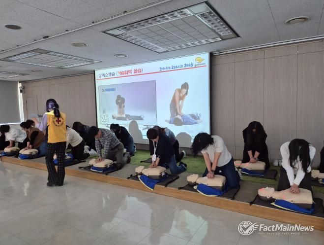 심폐소생술과 자동심장충격기(AED) 사용법, 기도 폐쇄 응급처치, 골절· 외상 처치 등 다양한 위기 상황을 가정한 반복 실습도 이어졌다.
