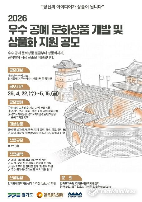 팩트메인뉴스 이훈 기자 | 한국도자재단이 ‘2026 공예 문화상품 개발 및 상품화 지원 사업’을 본격 추진한다고 22일 밝혔다.