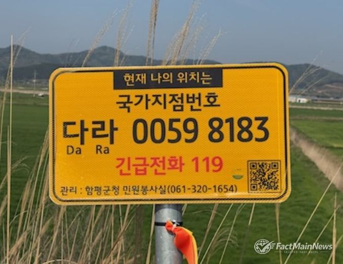 팩트메인뉴스 이훈 기자 | 전남 함평군이 재난·사고 등 긴급상황 발생 시 신속한 위치 파악과 대응을 위해 설치한 국가지점번호판 일제 조사를 실시한다.