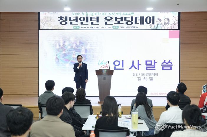 팩트메인뉴스 이훈 기자 | 천안시는 22일 시청 대회의실에서 청년인턴의 안정적인 직장 적응을 지원하는 ‘청년인턴 온보딩데이’를 개최했다.