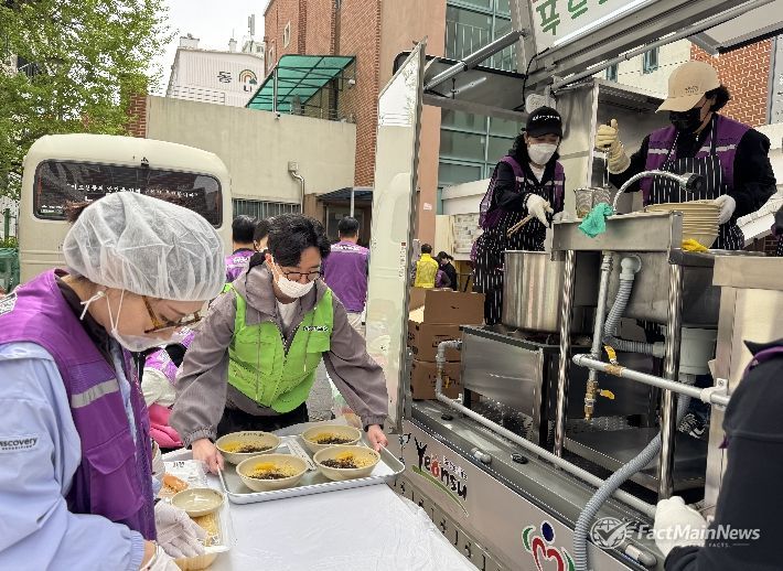 팩트메인뉴스 이훈 기자 | 연수구자원봉사센터는 21일에 청학노인복지관에서 ‘푸드트럭 온기나눔 짜장차 무료급식’ 활동을 진행했다.