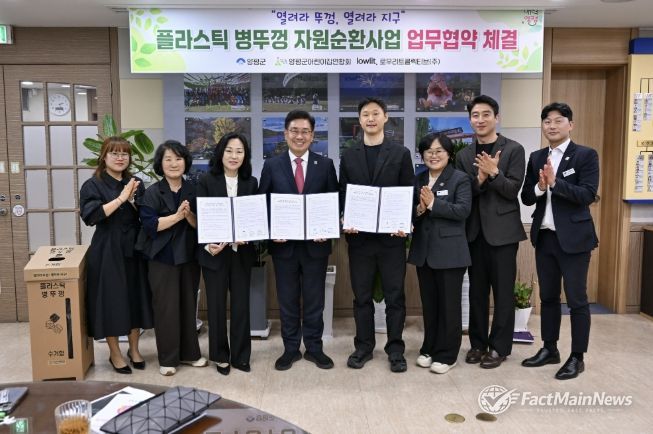 팩트메인뉴스 이훈 기자 | 양평군은 지난 21일 양평군어린이집연합회, 로우리트 콜렉티브(주)와 함께 ‘열려라 뚜껑, 열려라 지구’ 플라스틱 병뚜껑 자원순환사업 업무협약을 체결했다고 밝혔다.