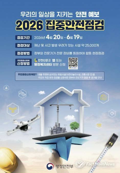 팩트메인뉴스 이훈 기자 | 구리시는 시민 안전 확보를 위해 4월 20일부터 6월 19일까지 두 달간 ‘2026년 집중 안전 점검’을 본격 추진한다고 밝혔다.