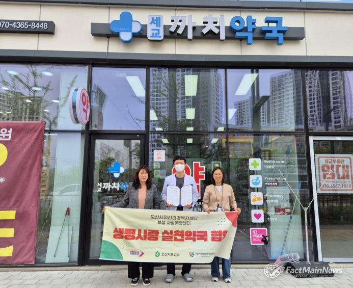 팩트메인뉴스 이훈 기자 | 오산시정신건강복지센터 부설 자살예방센터는 지역사회 기반 생명존중 문화 확산과 자살예방 체계 강화를 위해 지난 20일과 21일 이틀간 관내 약국 4곳과 ‘생명사랑약국’ 업무협약을 체결했다고 밝혔다.