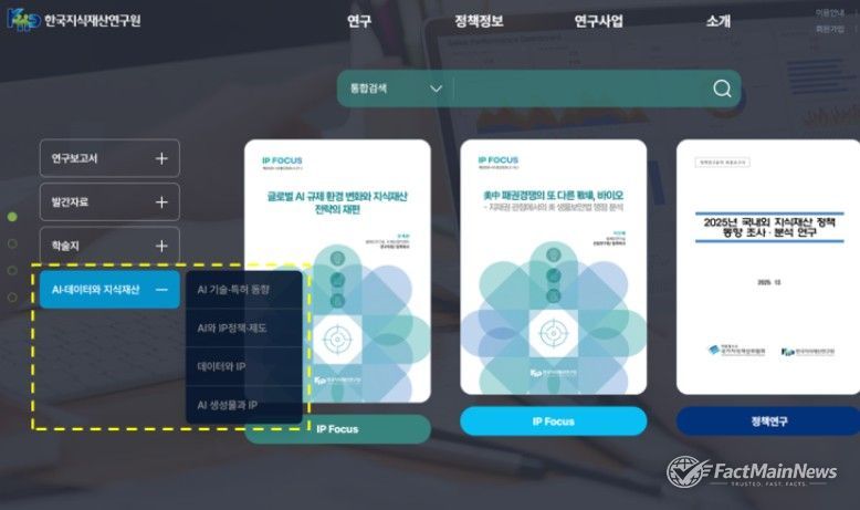 팩트메인뉴스 이훈 기자 | 지식재산처는 4월 22일 인공지능(AI)과 데이터 분야의 국내외 지식재산 연구정보를 한눈에 볼 수 있는 통합 정보 사이트인 ‘인공지능(AI)·데이터와 지식재산’ 웹페이지를 새로 개설했다고 밝혔다.