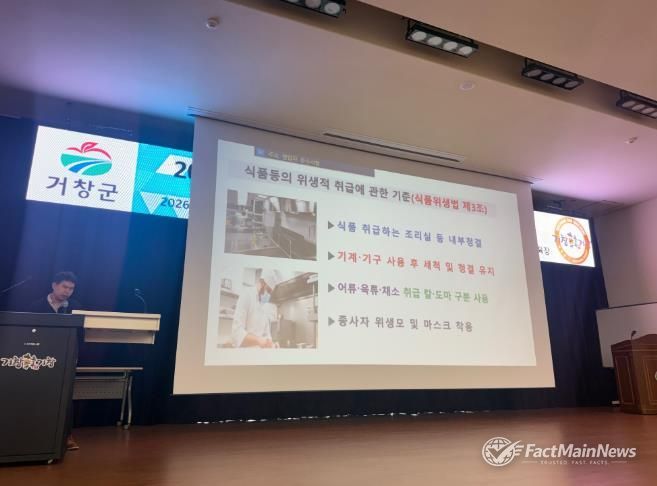 팩트메인뉴스 이훈 기자 | 거창군은 지난 20일부터 21일까지 이틀간 농업기술센터 미래농업복합교육관에서 일반음식점 영업주를 대상으로 ‘2026년 일반음식점 기존영업주 위생교육’을 실시했다.