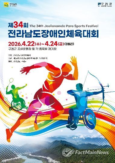 팩트메인뉴스 이훈 기자 | 제34회 전라남도장애인체육대회가 22일 구례군 일원에서 개회식을 시작으로 오는 24일까지 3일간의 열전에 돌입한다.