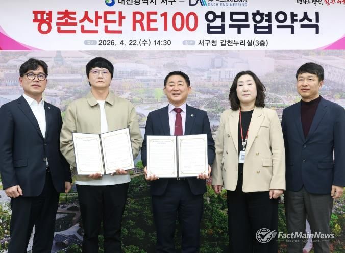 팩트메인뉴스 이훈 기자 | 대전 서구는 22일 구청 갑천누리실에서 평촌일반산업단지 입주기업인 ㈜닥스엔지니어링과 재생에너지 보급 확산을 위한 ‘RE100 업무협약’을 체결했다.
