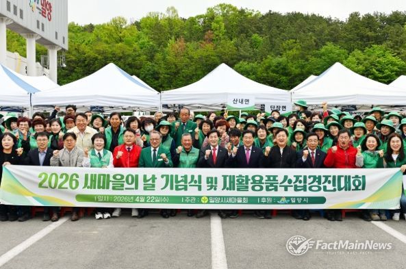 팩트메인뉴스 이훈 기자 | 밀양시새마을회(회장 이선동)는 22일 밀양종합운동장에서 새마을운동 제56주년을 맞아 ‘제16회 새마을의 날 기념식’과 함께 ‘우리동네 새단장’ 재활용품 수집 경진대회를 개최했다.