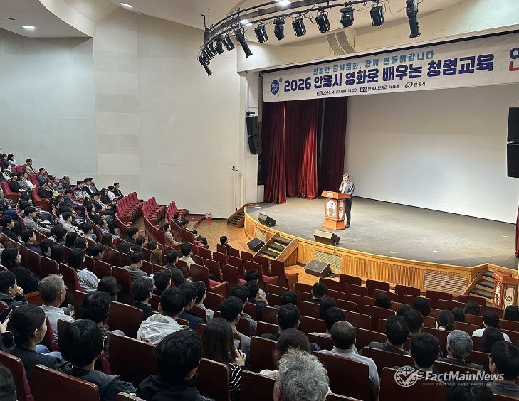 팩트메인뉴스 이훈 기자 | 안동시는 4월 21일 안동시민회관 낙동홀에서 시 소속 공무원 및 공직유관단체 직원 380여 명이 참석한 가운데 ‘2026년 영화로 배우는 청렴교육’을 실시했다.