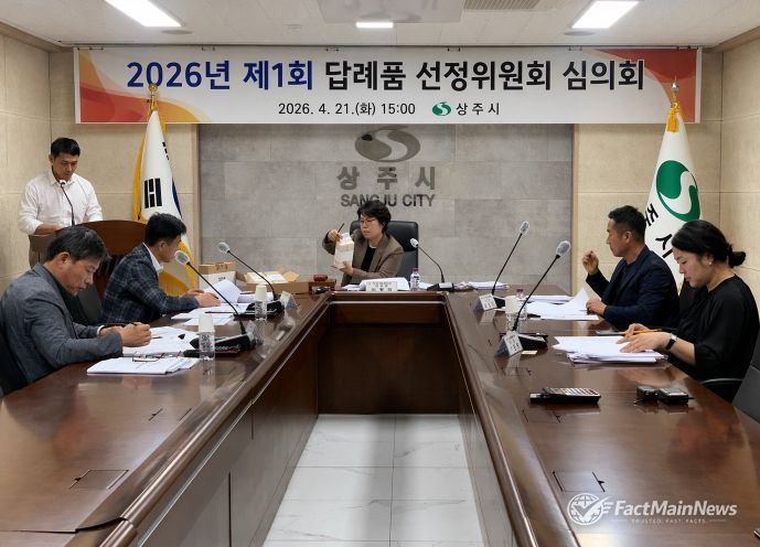 팩트메인뉴스 이훈 기자 | 상주시는 4월 21일 시청 소회의실에서 ‘2026년 제1회 고향사랑기부제 답례품선정심의회’를 개최하고 답례품 및 공급업체를 추가 선정했다.
