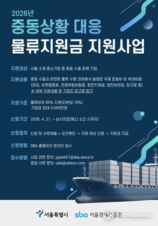 이에 서울시는 물류비 부담 완화를 위해 4월 21일부터 물류비 지원사업 참여기업을 모집하고, 현장 중심 대응을 이어간다고 밝혔다.