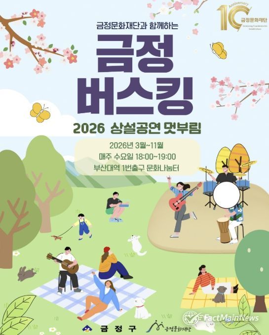 팩트메인뉴스 이훈 기자 | (재)금정문화재단은 지역 주민의 일상 속 문화 향유 기회를 확대하고 지역 예술인들의 공연 활동을 지원하기 위한 ‘2026 상설공연 멋부림 금정버스킹’을 운영 중이라고 밝혔다.