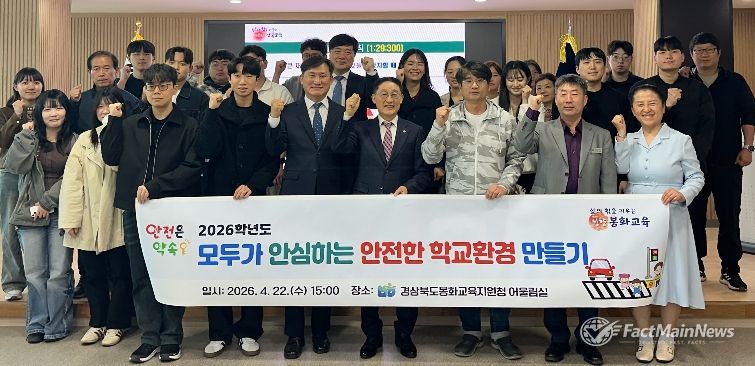 팩트메인뉴스 이훈 기자 | 경상북도봉화교육지원청은 2026년 4월 22일 봉화교육지원청 3층 어울림실에서 관내 초·중·고등학교 교직원을 대상으로 '2026학년도 안전한 학교환경 조성을 위한 교원 연수'를 실시했다.