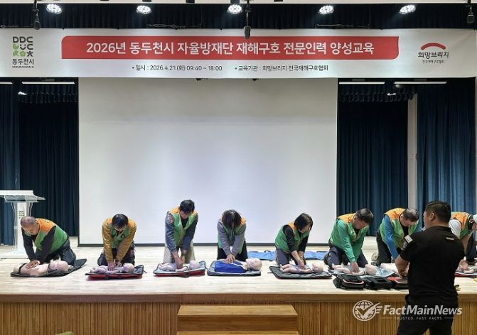 팩트메인뉴스 이훈 기자 | 동두천시는 지난 21일 평생학습관 한울림공연장에서 ‘자율방재단 재해구호 교육’을 실시했다.