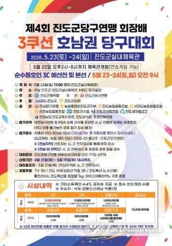 팩트메인뉴스 이훈 기자 | 진도군당구연맹은 ‘2026 진도아리랑배 당구 전국대회’와 ‘제4회 진도군당구연맹 회장배 3쿠션 호남권 당구대회’를 5월에 연이어 개최한다.