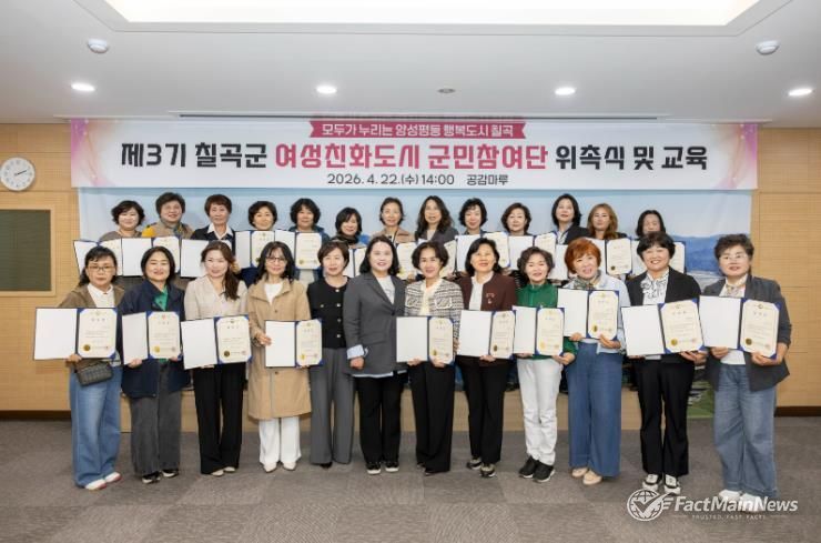 팩트메인뉴스 이훈 기자 | 칠곡군은 지난 22일 군청 공감마루에서 제3기 여성친화도시 군민참여단 25명을 위촉식을 가졌다.