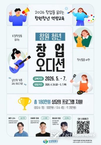 팩트메인뉴스 이훈 기자 | 창원특례시는 관내 청년들의 성공적인 로컬 창업을 지원하기 위해 ‘창원 청년 창업 오디션’ 참가자 20명을 오는 4월 24일부터 5월 7일까지 모집한다고 밝혔다.
