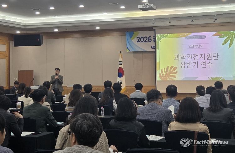 팩트메인뉴스 이훈 기자 | 경북교육청은 23일 본청 행복지원동 연화관에서 경북교육청 과학안전지원단 105명을 대상으로 ‘2026년 과학안전지원단 상반기 연수’를 개최했다고 밝혔다.