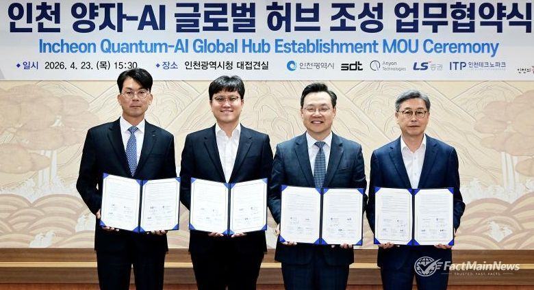 팩트메인뉴스 이훈 기자 | 인천광역시는 ㈜에스디티(이하 ‘SDT’), 미국 Anyon Computing(이하 ‘Anyon’), LS증권, 인천테크노파크와 함께 ‘양자-AI 글로벌 허브 조성’을 위한 업무협약(MOU)을 체결했다고 밝혔다.