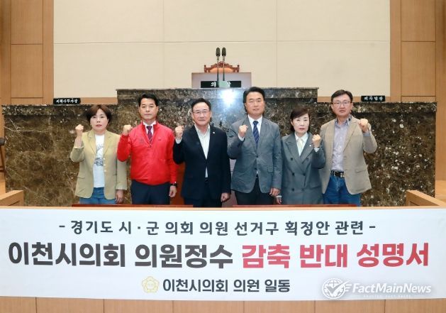 팩트메인뉴스 이훈 기자 | 이천시의회 의원 일동은 23일 본회의장에서 “경기도 시·군의원 선거구획정안”과 관련해 이천시 의원 정수 감축에 반대하는 공식 입장을 밝혔다. 최근 경기도 시·군의원 선거구획정위원회가 경기도의회에 제출한 초안에는 이천시 의원정수를 기존보다 1명 축소하는 방안이 포함된 것으로 알려졌다.