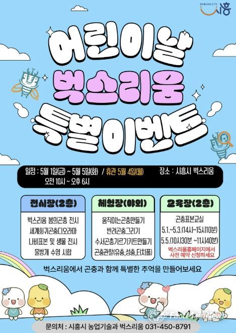 팩트메인뉴스 이훈 기자 | 시흥시 곤충체험전시관 ‘벅스리움’은 어린이날을 맞아 아동과 가족이 함께 즐길 수 있는 ‘특별 프로그램’을 오는 5월 1일부터 5일까지 운영한다.