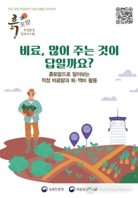비료를 과다하게 사용할 경우 작물이 흡수하지 못한 양분이 토양에 축적되거나 유실돼 비용 부담이 증가할 뿐 아니라, 토양 산성화와 염류집적 등 재배 환경 악화로 이어질 수 있다. 반면 토양검정 후 처방서에 따라 시비하면 작물 생육에 필요한 양분을 적기에 공급할 수 있어 수량 안정과 품질 향상에도 도움이 된다.