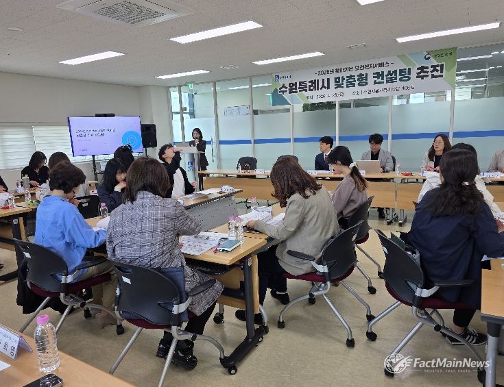 팩트메인뉴스 이훈 기자 | 수원특례시는 23일 수원시홍재복지타운 교육장에서 행정안전부가 주최한 ‘2026년 찾아가는 보건복지서비스 맞춤형 컨설팅’에 참여했다.