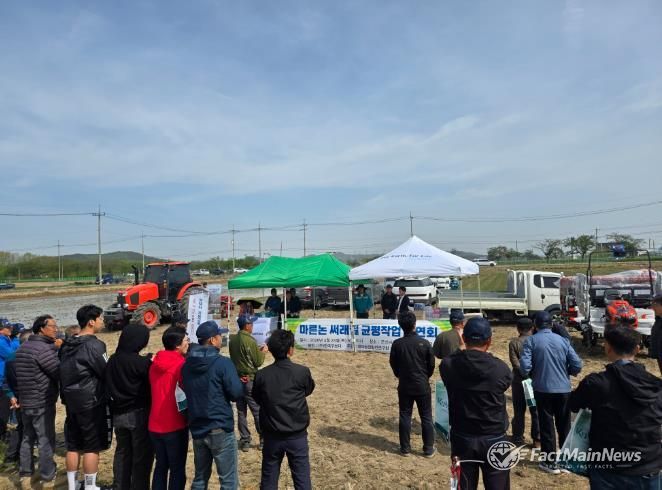 팩트메인뉴스 이훈 기자 | 군산시농업기술센터는 대야농업발전연구회와 공동 주관해 4월 23일 대야면 광교리 일원에서 벼 마른논 써레질 재배 기술 현장 연시회를 성황리 개최했다고 밝혔다.
