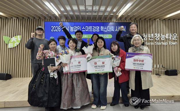 팩트메인뉴스 이훈 기자 | 전남 함평군이 전라남도 농업기술원이 주관한 ‘2026년 농업인 스마트경영 혁신대회에서 3개 분야를 석권하며 스마트 농업 경영 선도 지역임을 입증했다.