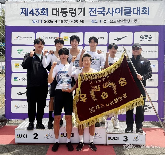 팩트메인뉴스 이훈 기자 | 의정부시청 직장운동경기부 사이클팀이 4월 18일부터 23일까지 6일간 전라남도 나주에서 열린 ‘제43회 대통령기 전국사이클대회’에서 종합우승을 차지하며 2년 연속 정상에 오르는 성과를 거뒀다.
