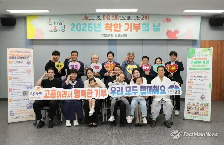 팩트메인뉴스 이훈 기자 | 고흥군은 지난 23일 군청 팔영산홀에서 4월 ‘착한 기부의 날’ 행사를 개최했다. 이번 행사에는 2개 분야 6팀 15명이 참여해 총 1,960만 원의 기부금이 모였다.