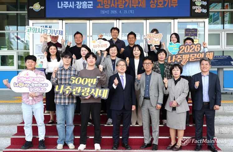 팩트메인뉴스 이훈 기자 | 전남 나주시와 장흥군이 고향사랑기부제 활성화와 지역 간 상생 발전을 위해 손을 맞잡았다.