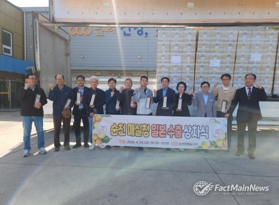 팩트메인뉴스 이훈 기자 | 순천시는 24일 순천엔매실(주)에서 ‘2026년 순천 매실청 일본 수출 기념 상차식’을 개최했다고 밝혔다.