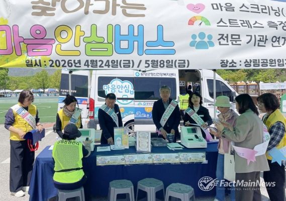 팩트메인뉴스 이훈 기자 | 함양군은 4월 24일 상림공원 일원에서 봄철 자살 고위험 시기인 ‘스프링피크(Spring Peak)’에 선제적으로 대응하기 위해 찾아가는 정신건강서비스 ‘마음안심버스’를 운영하고 자살 예방 홍보활동을 펼쳤다.