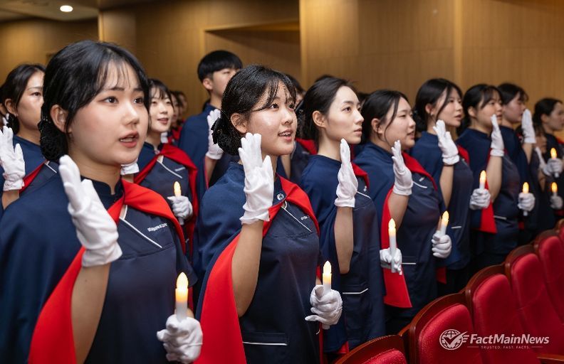 팩트메인뉴스 이훈 기자 | 경상국립대학교 간호대학은 4월 24일 오전 간호대학 복합교육센터 1층 대강당에서 ‘2026년도 나이팅게일 선서식’을 개최했다.