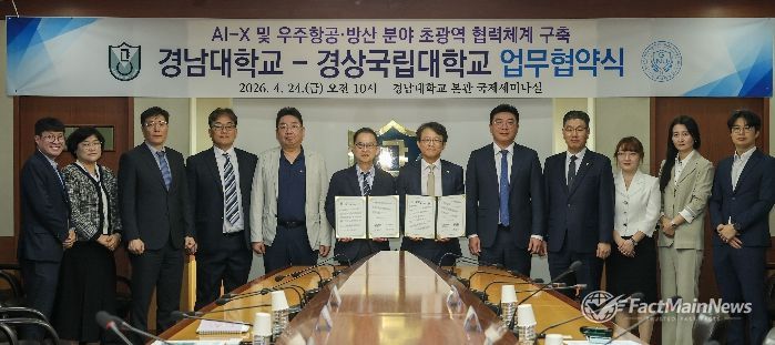 팩트메인뉴스 이훈 기자 | 경상국립대학교와 경남대학교는 4월 24일 오전 10시 경남대학교 국제세미나실에서 국가균형성장과 동남권 지역 대학의 동반성장 촉진을 위한 업무협약을 체결했다.