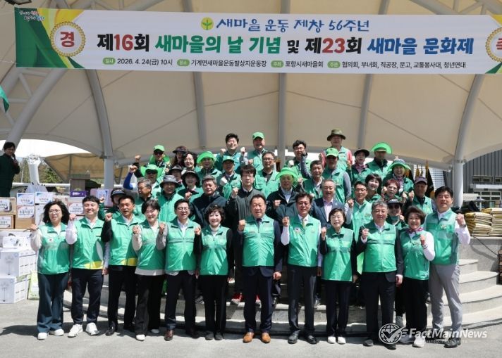 팩트메인뉴스 이훈 기자 | 포항시새마을회는 24일 기계면 새마을운동 발상지 운동장에서 ‘제16회 새마을의 날 기념식 및 제23회 새마을문화제’를 성황리에 개최했다.