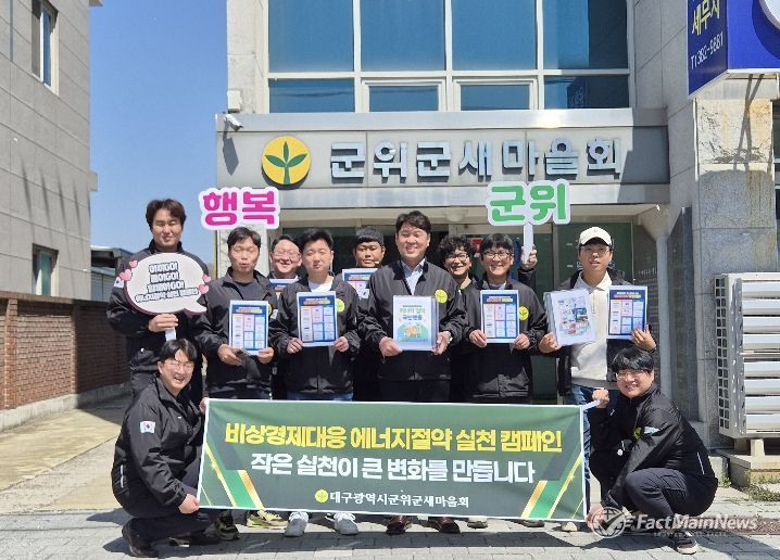 팩트메인뉴스 이훈 기자 | 군위군새마을회는 최근 중동 사태 등 국제 정세 불안에 따른 자원안보 위기 단계가 ‘경계’로 격상됨에 따라 군민들의 자발적인 에너지 절약 실천을 유도하기 위한 릴레이 캠페인을 전개하고 있다.