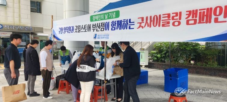 팩트메인뉴스 이훈 기자 | 부산 사하구는 제46회 장애인의 날(4월 20일)을 맞아 지난 4월 23일 사하구청 본청 및 제2청사에서 중증장애인 직업재활시설 ‘굿윌코리아 보호작업장’(시설장 김성태)과 함께 '굿사이클링' 기부 물품 나눔 행사를 개최했다.