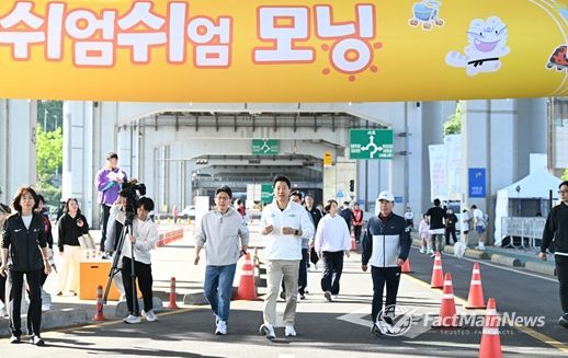 팩트메인뉴스 이훈 기자 | 오세훈 서울시장은 26일 아침 ‘2026 차 없는 잠수교 뚜벅뚜벅 축제’ 부대 행사로 열린 ‘쉬엄쉬엄 모닝’에 참여했다.