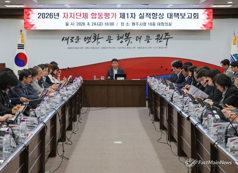 팩트메인뉴스 이훈 기자 | 원주시는 지난 24일 시청 대회의실에서 ‘2027년(2026년 실적) 자치단체 합동평가 실적향상 대책보고회’를 개최했다.